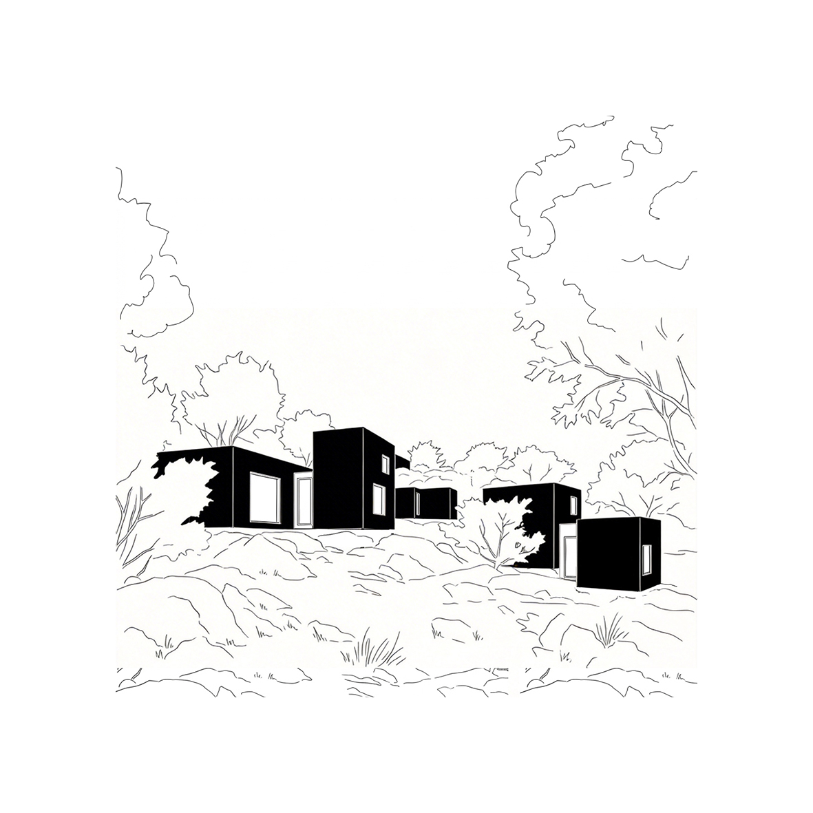 This villa is nestled within a rocky, natural landscape, and its design is a striking example of harmonizing with the surroundings. Comprising a low black box that elegantly traverses the slope,…